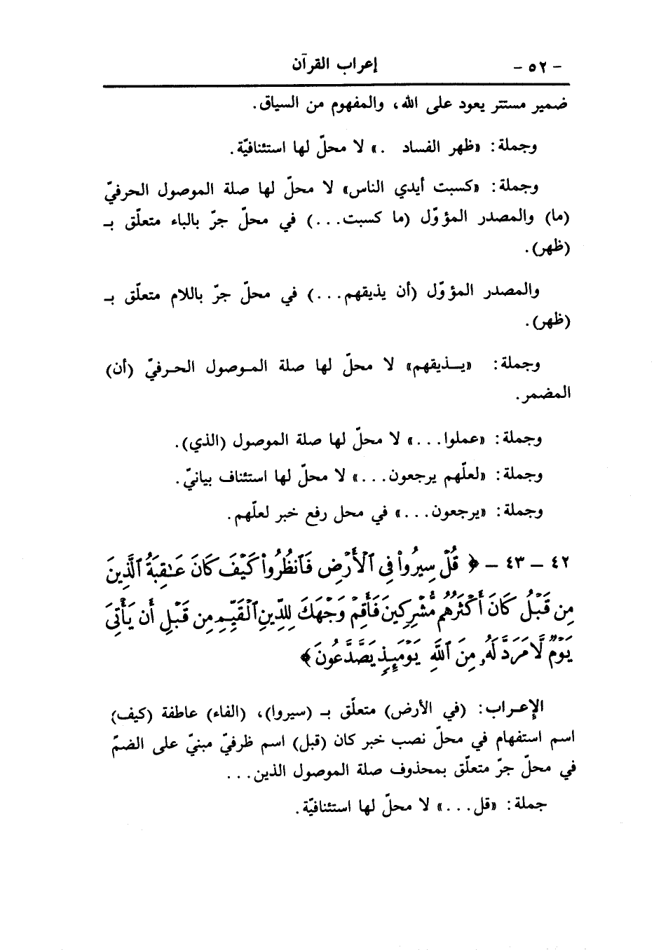 حرف ابتداء (إذا) ظرف للزمن المستقبل مبنيّ في محلّ نصب متعلّق بمضمون الجواب (ضاقت) فعل ماض.. و (التاء) للتأنيث (على) حرف جرّ و (هم) ضمير في محلّ جرّ متعلّق ب (ضاقت) ، (الأرض) فاعل مرفوع (الباء) حرف جرّ (ما) حرف مصدريّ (رحبت) مثل ضاقت، والفاعل ضمير مستتر تقديره هي (الواو) عاطفة (ضاقت عليهم أنفسهم) مثل ضاقت عليهم الأرض، و (هم) متّصل مضاف إليه (الواو) عاطفة (ظنّوا) فعل ماض مبنيّ على الضمّ.. والواو فاعل (أن) مخفّفة من الثقيلة، واسمها ضمير الشأن محذوف (لا) نافية للجنس (ملجأ) اسم لا مبنيّ على الفتح في محلّ نصب (من الله) جارّ ومجرور متعلّق بملجأ بحذف مضاف أي من عذاب اللَّه أو من سخط اللَّه (إلّا) أداة استثناء «1» ، (إلى) حرف جرّ و (الهاء) ضمير في محلّ جرّ بدل من مستثنى منه مقدّر «2» ، (ثمّ) حرف عطف (تاب) فعل ماض (عليهم) مثل الأول متعلّق ب (تاب) ، (اللام) للتعليل (يتوبوا) مضارع منصوب بأن مضمرة بعد اللام وعلامة النصب حذف النون.. والواو فاعل (إنّ) حرف مشبّه بالفعل للتوكيد (اللَّه) لفظ الجلالة اسم إنّ (هو) ضمير فصل «3» ، (التوّاب) خبر إنّ مرفوع (الرحيم) خبر ثان مرفوع.