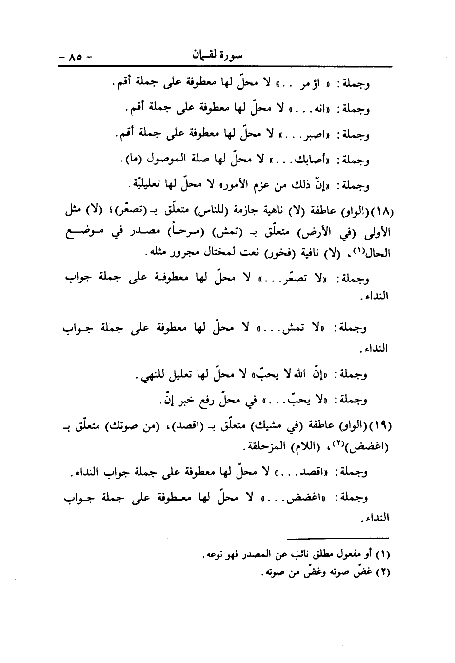 ورد في هذه الآية قوله تعالى سُبْحانَكَ اللَّهُمَّ ونحن هنا بخصوص كلمة (سبحانك) فإننا نعربها مفعولا مطلقا لفعل محذوف، وهناك مصادر تجري على هذا المنوال وتعرب إعرابها، ولما كان ذلك من الأمور الهامة ويخفى على الكثير رأينا تتميما للفائدة أن نذكرها. هناك مصادر مسموعة شاع استعمالها ولا أفعال لها، ولكن القرائن دالة عليها. مثل: (سمعا وطاعة، عجبا، حمدا وشكرا لا كفرا معاذ اللَّه) ، ومن المفيد أن نعرض هنا طائفة من هذه المصادر المسموعة لدورانها على الألسنة: