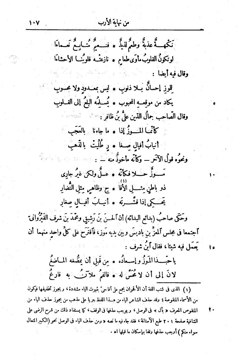 وحكى صاحب (بدائع البدائه) أنّ الحسن بن رشيق ومحمّد بن شرف القيروانىّ اجتمعا فى مجلس المعزّ بن باديس وبين يديه موز، فاقترح على كلّ واحد منهما أن يعمل فيه شيئا، فقال ابن شرف: