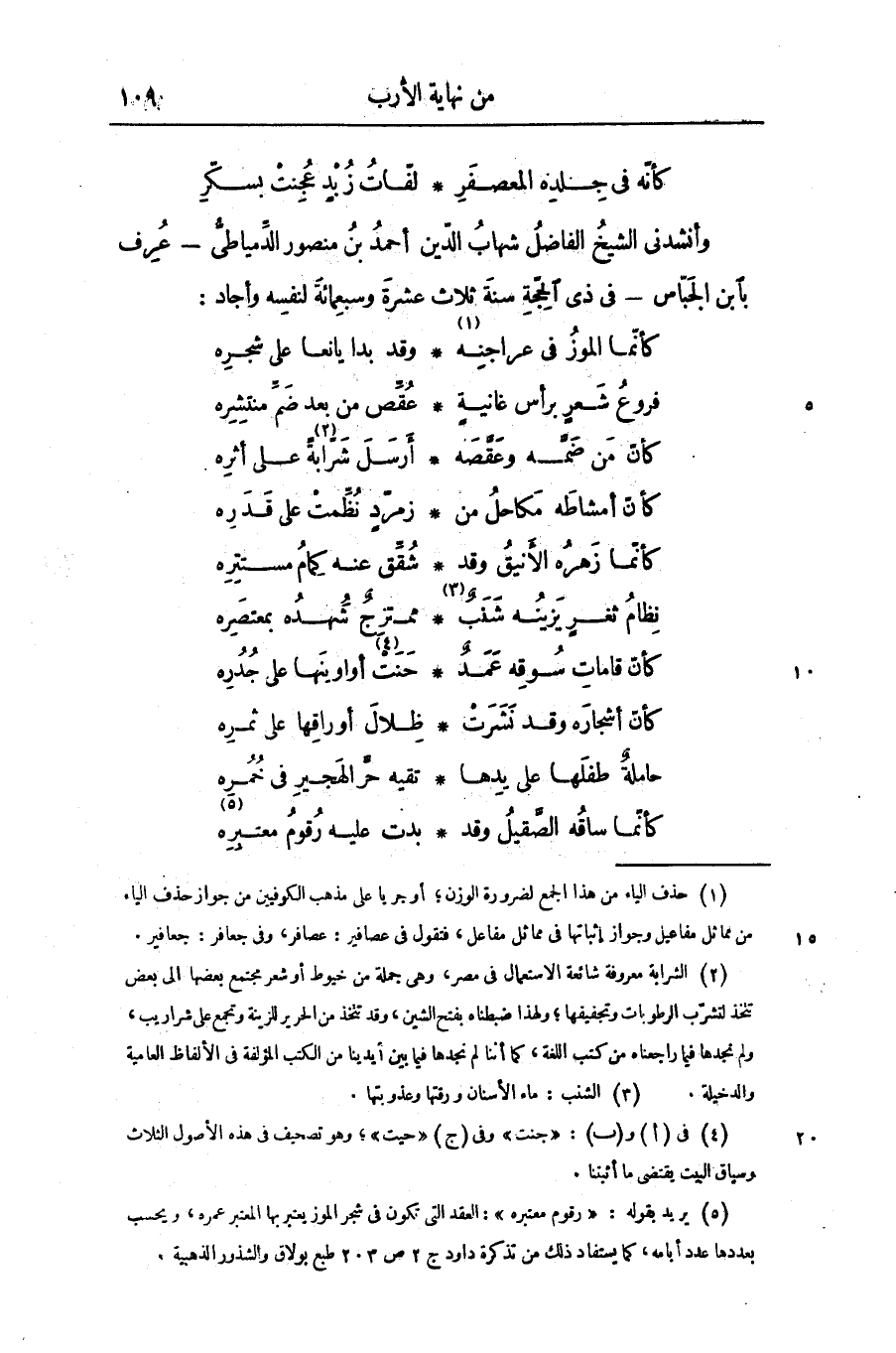 وأنشدنى الشيخ الفاضل شهاب الدّين أحمد بن منصور الدّمياطىّ- عرف بابن الجبّاس- فى ذى الحجّة سنة ثلاث عشرة وسبعمائة لنفسه وأجاد: