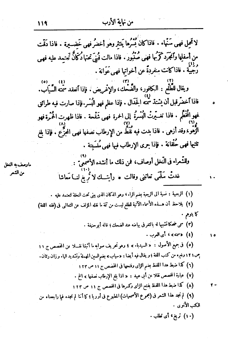 وللشّعراء فى النّخل أوصاف، فمن ذلك ما أنشده الأصمعىّ «9» :