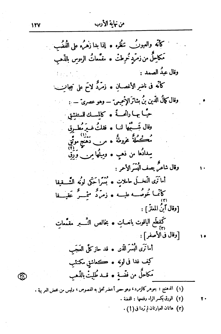 مكاحل من زمرّد خرطت ... مقمّعات الرءوس بالذّهب