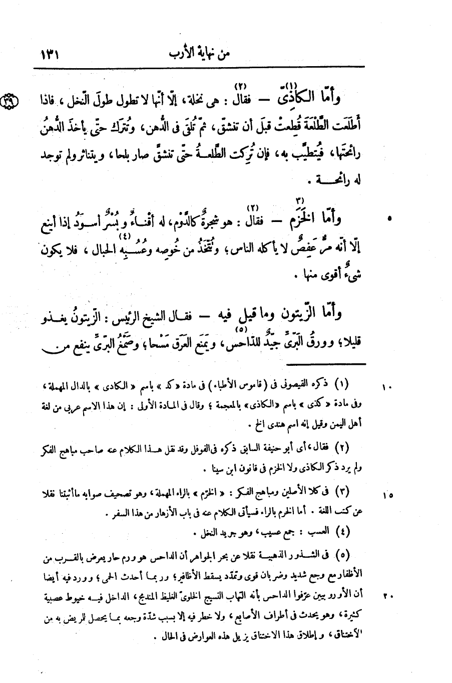 - فقال الشيخ الرئيس: الزّيتون يغذو قليلا؛ وورق البرّىّ جيّد للدّاحس «6» ، ويمنع العرق مسحا؛ وصمغ البرّىّ ينفع من