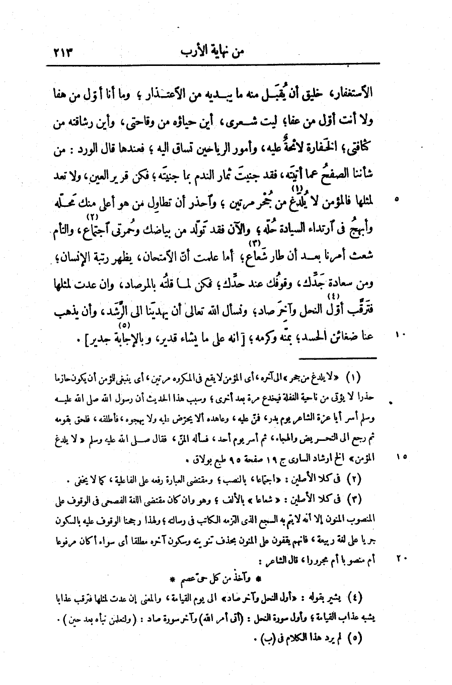 الاستغفار، خليق أن يقبل منه ما يبديه من الاعتذار؛ وما أنا أوّل من هفا ولا أنت أوّل من عفا؛ ليت شعرى، أين حياؤه من وقاحتى، وأين رشاقته من كثافتى؛ الخفارة لائحة عليه، وأمور الرياحين تساق اليه؛ فعندها قال الورد: من شأننا الصفح عما أتيته، فقد جنيت ثمار الندم بما جنيته؛ فكن قرير العين، ولا تعد لمثلها فالمؤمن لا يلدغ «1» من جحر مرتين؛ واحذر أن تطاول من هو أعلى منك محلّه وأبهج فى ارتداء السيادة حلّه؛ والآن فقد تولّد من بياضك وحمرتى اجتماع «2» ، والتأم شعث أمرنا بعد أن طار شعاع «3» ؛ أما علمت أنّ الامتحان، يظهر رتبة الإنسان؛ ومن سعادة جدّك، وقوفك عند حدّك؛ فكن لما قلته بالمرصاد، وان عدت لمثلها فترقّب أوّل «4» النحل وآخر صاد؛ ونسأل الله تعالى أن يهدينا الى الرّشد، وأن يذهب عنا ضغائن الحسد؛ بمنّه وكرمه؛ [انه على ما يشاء قدير، وبالإجابة «5» جدير] .
