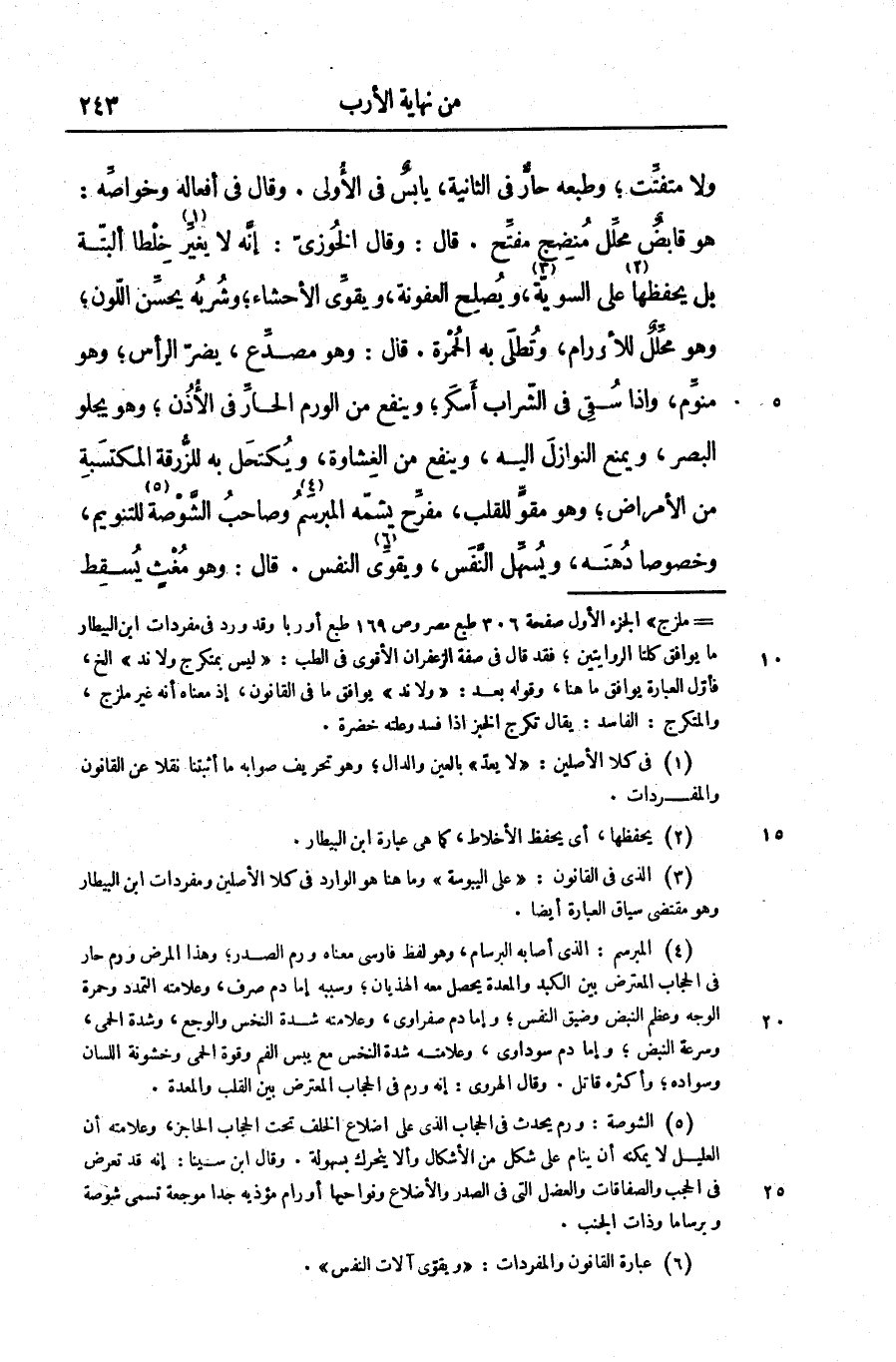 ولا متفتّت؛ وطبعه حارّ فى الثانية، يابس فى الأولى. وقال فى أفعاله وخواصّه: