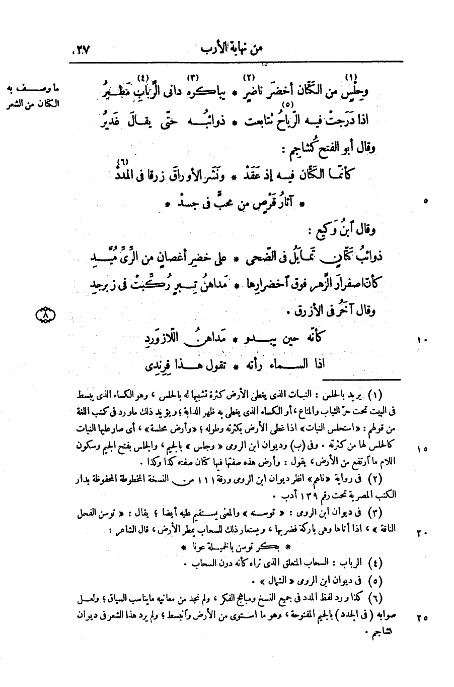 كأنّ اصفرار الزّهر فوق اخضرارها ... مداهن تبر ركّبت فى زبرجد