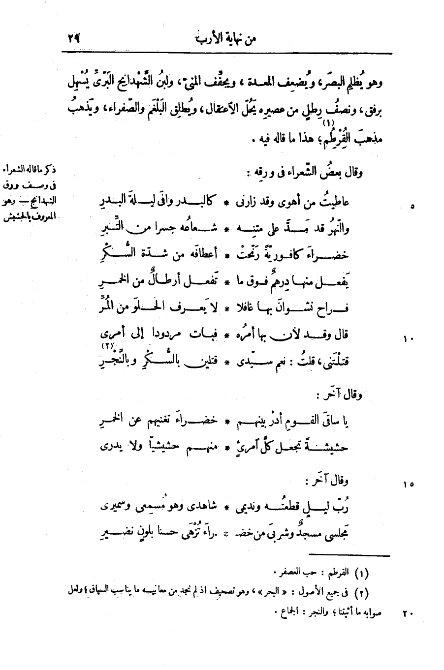 قتلتنى، قلت: نعم سيّدى ... قتلين بالسّكر وبالنّجر «2»