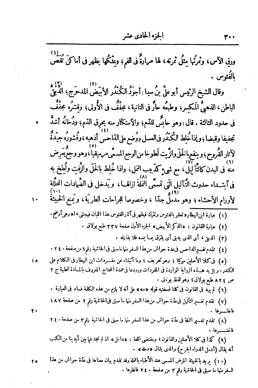 الباطن، الذهبىّ المكسر؛ وطبعه حارّ فى الثانية، مجفّف فى الأولى؛ وقشره مجفّف فى حدود الثالثة. قال: وهو حابس للدّم؛ والاستكثار منه يحرق الدّم؛ ودخانه أشدّ تجفيفا وقبضا؛ وإذا خلط الكندر فى العسل ووضع على الدّاحس «4» أذهبه، وقشوره جيّدة لآثار القروح؛ وينفع بالخلّ والزّيت لطوخا من الوجع المسمّى مرميقيا «5» ، وهو وجع يعرض منه «6» فى البدن كالثّآليل «7» ، مع شىء كدبيب النمل؛ واذا خلط بالخلّ والزّفت ولطخ به فى ابتداء حدوث الثّآليل الّتى تسمّى النملة «8» ازالها، ويدخل فى الضّمادات المحلّلة لأورام الأحشاء؛ وهو مدمل «9» جدّا، وخصوصا للجراحات الطريّة، ويمنع الخبيثة «10»