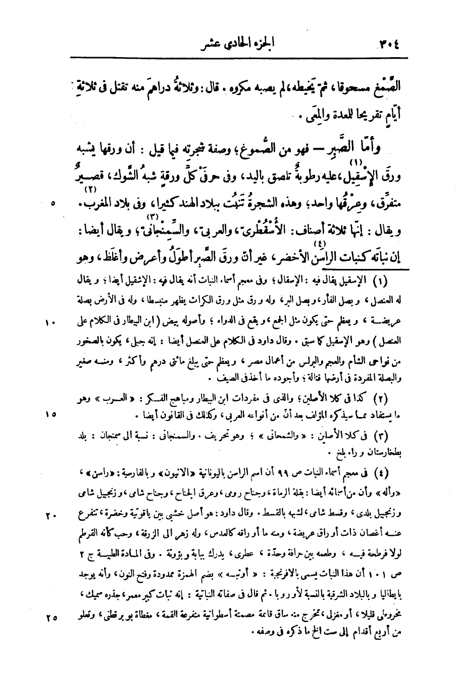 إن نباته كنبات الراسن «4» الأخضر، غير أنّ ورق الصّبر أطول وأعرض وأغلظ، وهو