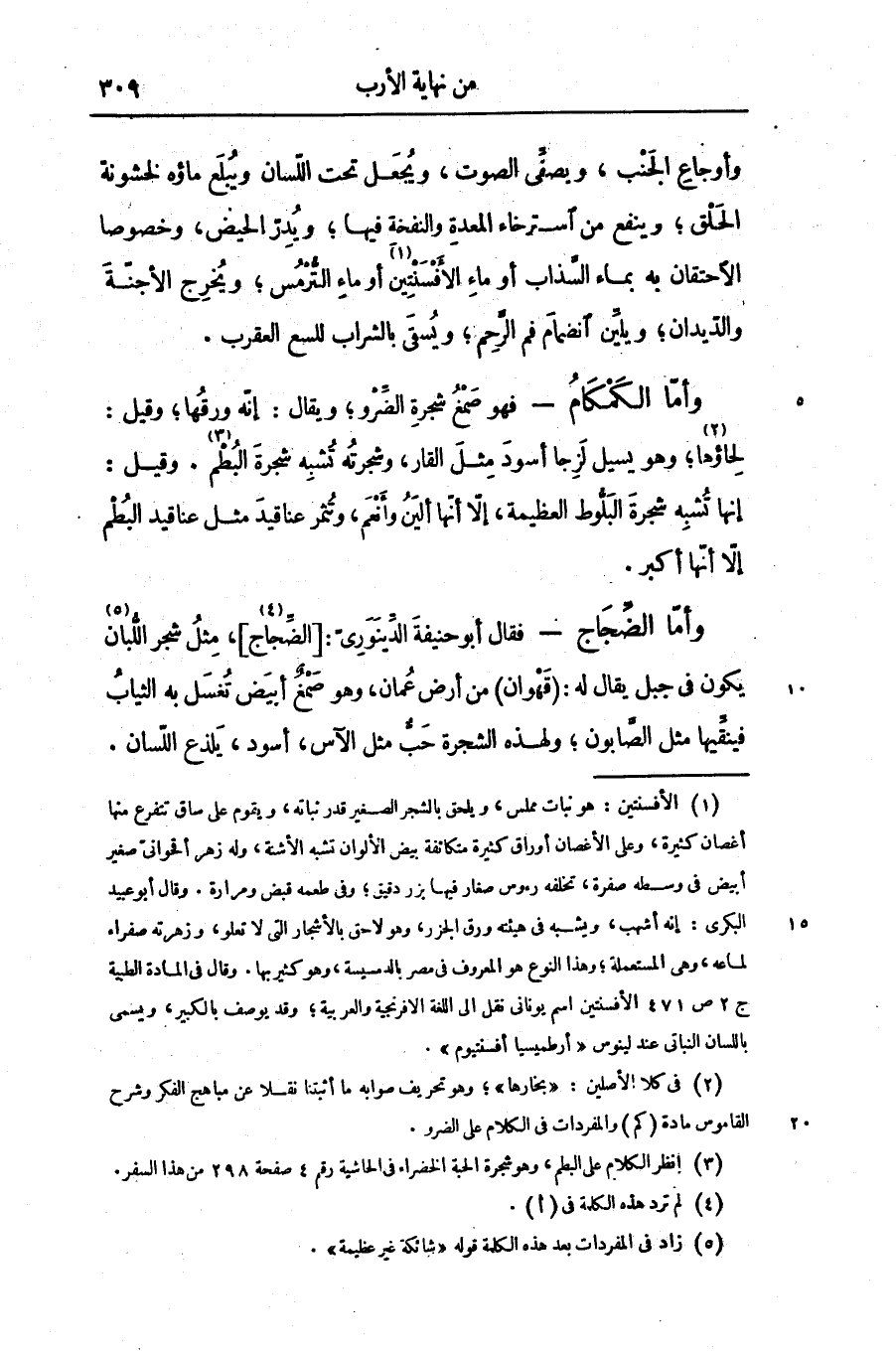 - فقال أبو حنيفة الدّينورىّ: [الضّجاج «4» ] ، مثل شجر اللّبان «5» يكون فى جبل يقال له: (قهوان) من أرض عمان، وهو صمغ أبيض تغسل به الثياب فينقّيها مثل الصّابون؛ ولهذه الشجرة حبّ مثل الآس، أسود، يلذع اللّسان.