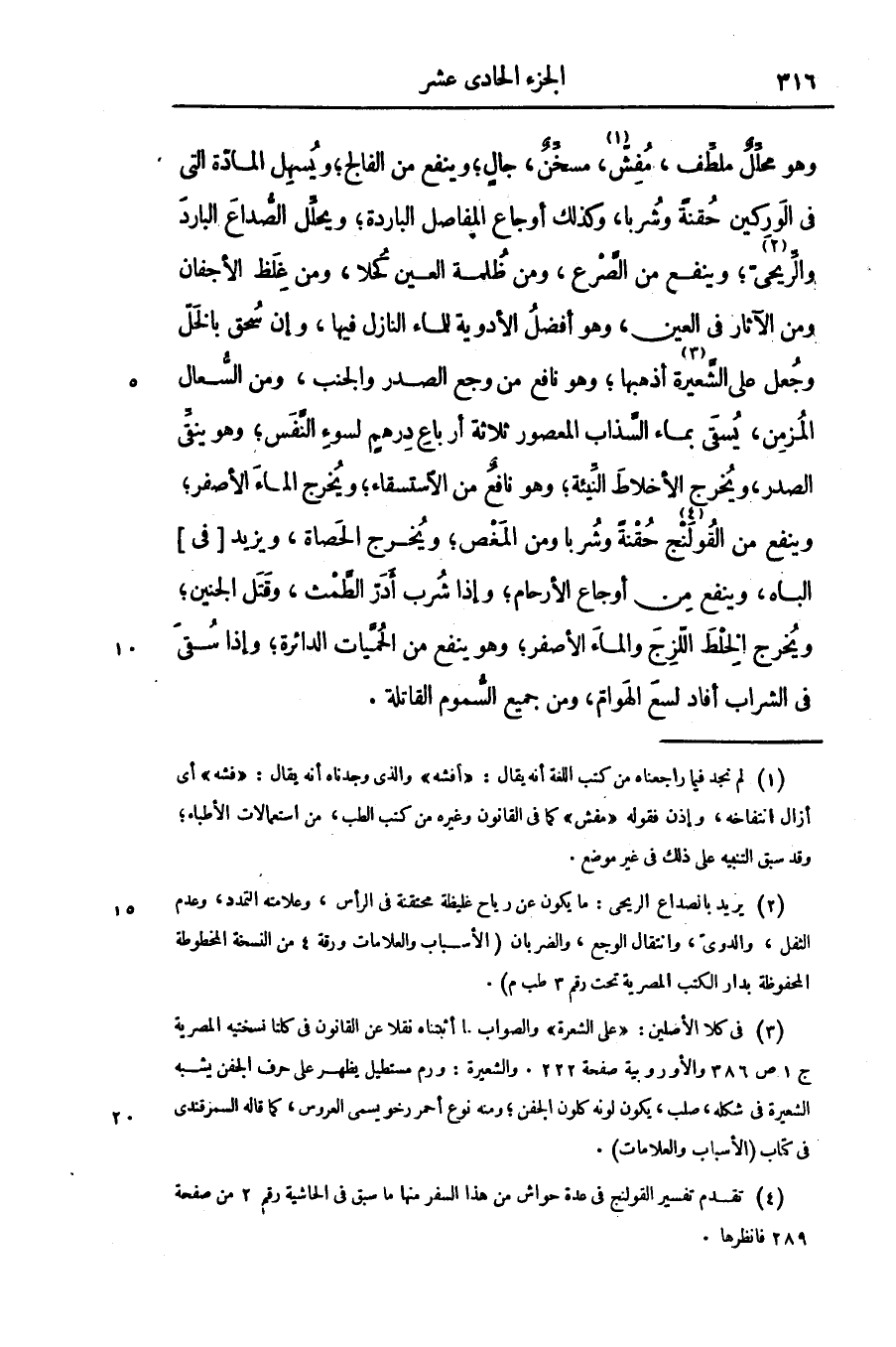 وهو محلّل ملطّف، مفشّ «1» ، مسخّن، جال؛ وينفع من الفالج؛ ويسهل المادّة التى فى الوركين حقنة وشربا، وكذلك أوجاع المفاصل الباردة؛ ويحلّل الصّداع البارد والرّيحىّ «2» ؛ وينفع من الصّرع، ومن ظلمة العين كحلا، ومن غلظ الأجفان ومن الآثار فى العين، وهو أفضل الأدوية للماء النازل فيها، وإن سحق بالخلّ وجعل على الشّعيرة «3» أذهبها؛ وهو نافع من وجع الصدر والجنب، ومن السّعال المزمن، يسقى بماء السّذاب المعصور ثلاثة أرباع درهم لسوء النّفس؛ وهو ينقّى الصدر، ويخرج الأخلاط النّيئة؛ وهو نافع من الاستسقاء؛ ويخرج الماء الأصفر؛ وينفع من القولنج «4» حقنة وشربا ومن المغص؛ ويخرج الحصاة، ويزيد [فى] الباه، وينفع من أوجاع الأرحام؛ وإذا شرب أدرّ الطّمث، وقتل الجنين؛ ويخرج الخلط اللّزج والماء الأصفر؛ وهو ينفع من الحميّات الدائرة؛ وإذا سقى فى الشراب أفاد لسع الهوامّ، ومن جميع السّموم القاتلة.