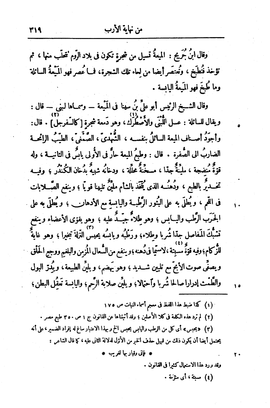 وقال الشيخ الرئيس أبو علىّ بن سينا فى الميعة- وسماها لبنى- قال: