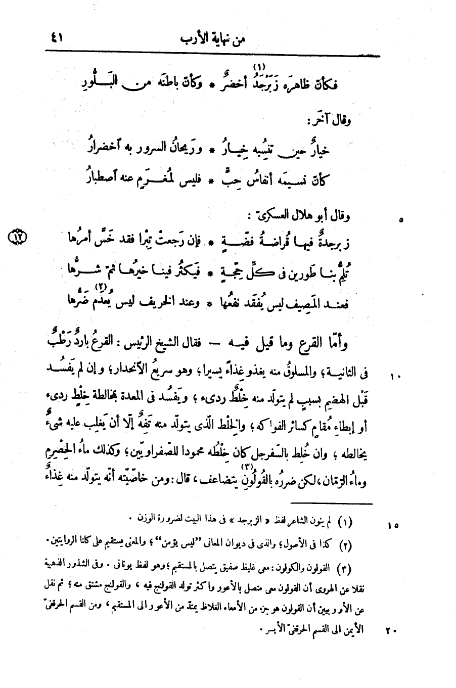 فكأنّ ظاهره زبرجد «1» أخضر ... وكأنّ باطنه من البلّور