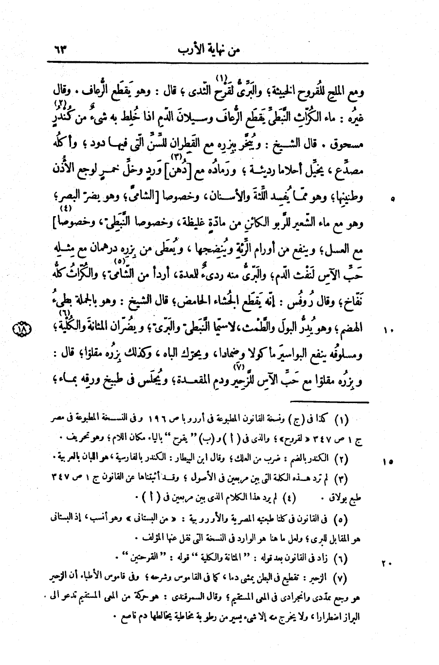 ومع الملح للقروح الخبيثة؛ والبرّىّ لقرح «1» الثّدى؛ قال: وهو يقطع الرّعاف. وقال غيره: ماء الكرّاث النّبطىّ يقطع الرّعاف وسيلان الدّم اذا خلط به شىء من كندر «2» مسحوق. قال الشيخ: ويبخّر ببزره مع القطران للسّنّ الّتى فيها دود؛ وأكله مصدّع، يخيّل أحلاما رديئة؛ ورماده مع [دهن «3» ] ورد وخلّ خمر لوجع الأذن وطنينها؛ وهو ممّا يفسد اللّثة والأسنان، وخصوصا [الشامىّ؛ وهو يضرّ البصر؛ وهو مع ماء الشّعير للرّبو الكائن من مادّة غليظة، وخصوصا النّبطىّ، وخصوصا «4» ] مع العسل؛ وينفع من أورام الرّئة وينضجها، ويعطى من بزره درهمان مع مثله حبّ الآس لنفث الدّم؛ والبرّىّ منه ردىء للمعدة، أردأ من الشّامىّ «5» ؛ والكرّاث كلّه نفّاخ؛ وقال روفس: إنّه يقطع الجشاء الحامض؛ قال الشيخ: وهو بالجملة بطىء الهضم؛ وهو يدرّ البول والطّمث، لا سيّما النّبطىّ والبرّى؛ ويضرّان المثانة والكلية «6» ؛ ومسلوقه ينفع البواسير مأكولا وضمادا، ويحرّك الباه، وكذلك بزره مقلوّا؛ قال:
