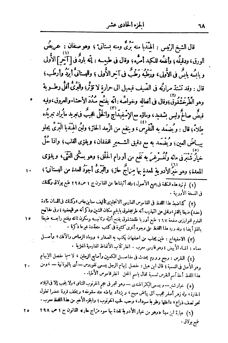 قال الشيخ الرئيس: الهندبا منه برّىّ ومنه بستانىّ؛ وهو صنفان: عريض الورق، ودقيقه؛ وأنفعه للكبد أمرّه؛ وقال فى طبعه: إنّه بارد فى [آخر «1» ] الأولى ويابسه يابس فى الأولى، ورطبه رطب فى آخر الأولى؛ والبستانىّ أبرد وأرطب؛ قال: وقد تشتدّ مرارته فى الصّيف فيميل الى حرارة لا تؤثّر؛ والبرّىّ أقلّ رطوبة وهو الطّر خشقوق «2» ؛ وقال فى أفعاله وخواصّه: انّه يفتّح سدد الأحشاء والعروق، وفيه قبض صالح وليس بشديد، وماؤه مع الإسفيدّاج «3» والخلّ عجيب فى تبريد ما يراد تبريده طلاء؛ قال: ويضمد به النّقرس «4» ، وينفع من الرّمد الحارّ؛ ولبن الهندبا البرّىّ يجلو بياض العين؛ ويضمد به مع دقيق الشعير للخفقان، ويقوّى القلب؛ واذا حلّ خيار «5» شنبر فى مائه وتغرغر به نفع من أورام الحلق؛ وهو يسكّن الغثى، ويقوّى المعدة، وهو خير «6» الأدوية لمعدة بها مزاج حارّ؛ والبرّىّ أجود للمعدة من البستانىّ؛
