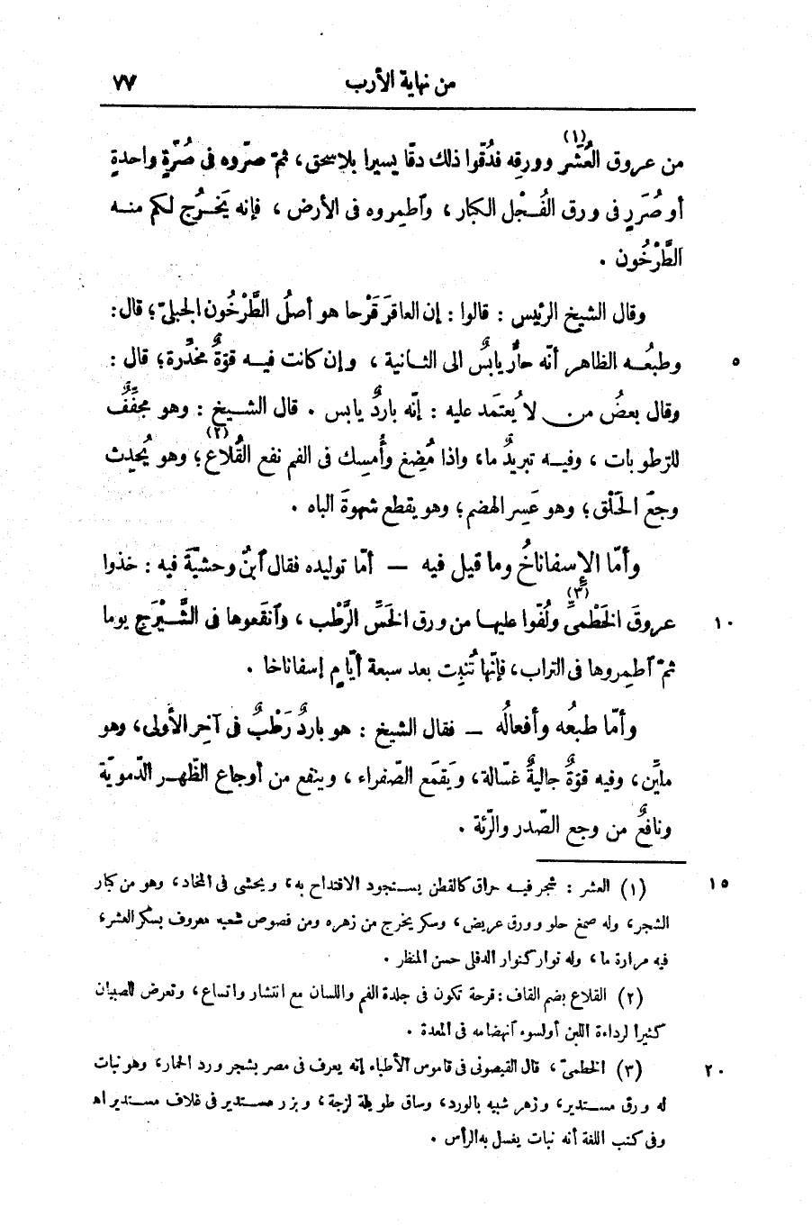 من عروق العشر «1» وورقه فدقّوا ذلك دقّا يسيرا بلاسحق، ثمّ صرّوه فى صرّة واحدة أو صرر فى ورق الفجل الكبار، واطمروه فى الأرض، فإنه يخرج لكم منه الطّرخون.