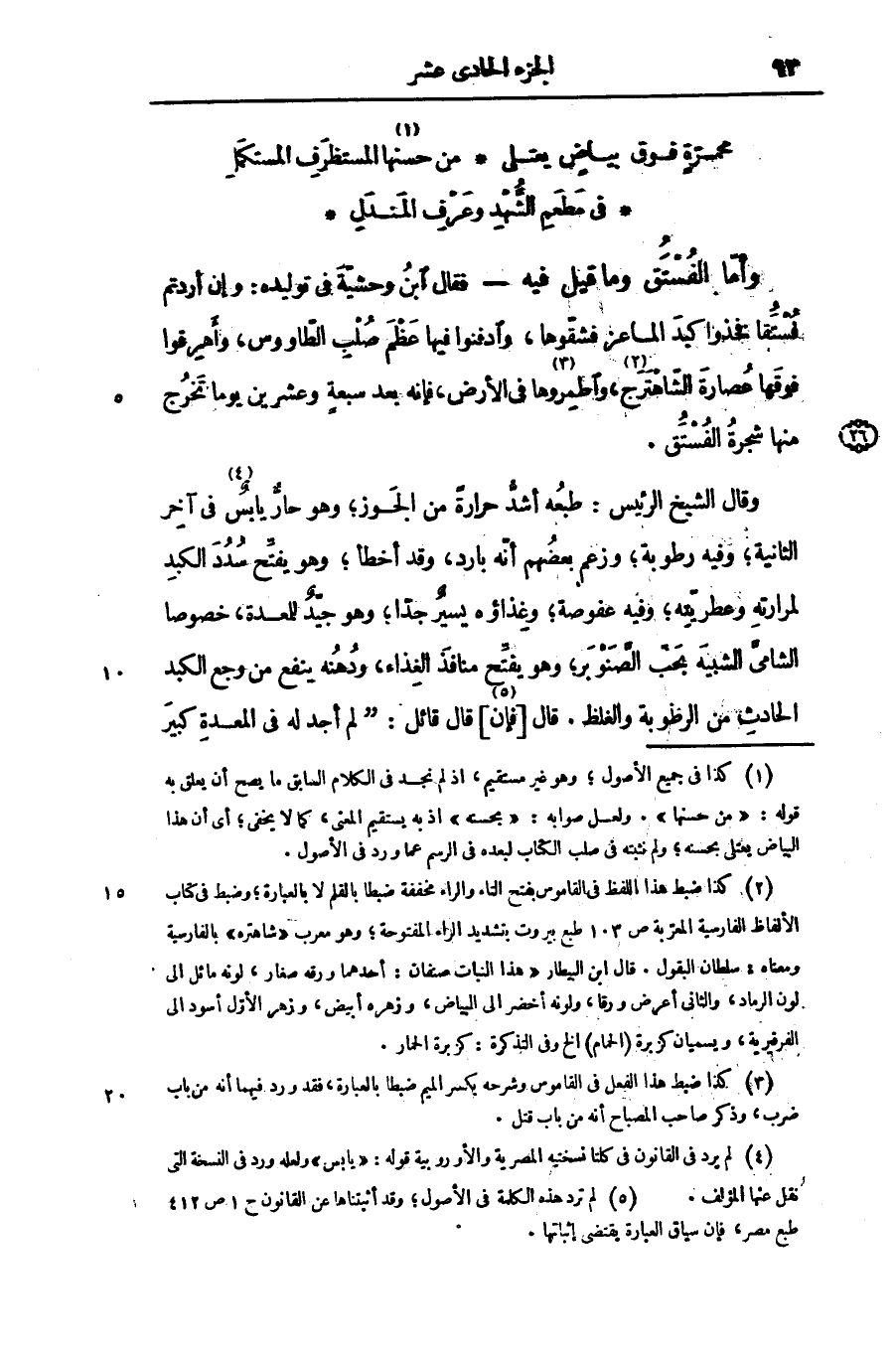 - فقال ابن وحشيّة فى توليده: وإن أردتم فستقا فخذوا كبد الماعز فشقّوها، وادفنوا فيها عظم صلب الطّاووس، وأهرقوا فوقها عصارة الشّاهترج «2» ، واطمروها «3» فى الأرض، فإنه بعد سبعة وعشرين يوما تخرج منها شجرة الفستق.