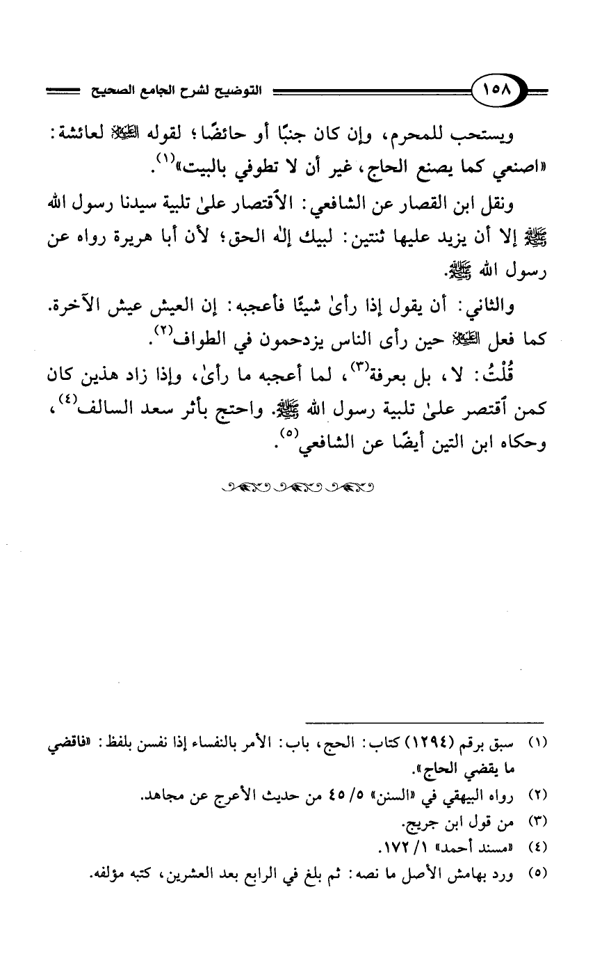 قُلْتُ: لا، بل بعرفة (¬3)، لما أعجبه ما رأى، وإذا زاد هذين كان كمن اقتصر على تلبية رسول الله - صلى الله عليه وسلم -. واحتج بأثر سعد السالف (¬4)، وحكاه ابن التين أيضًا عن الشافعي (¬5).