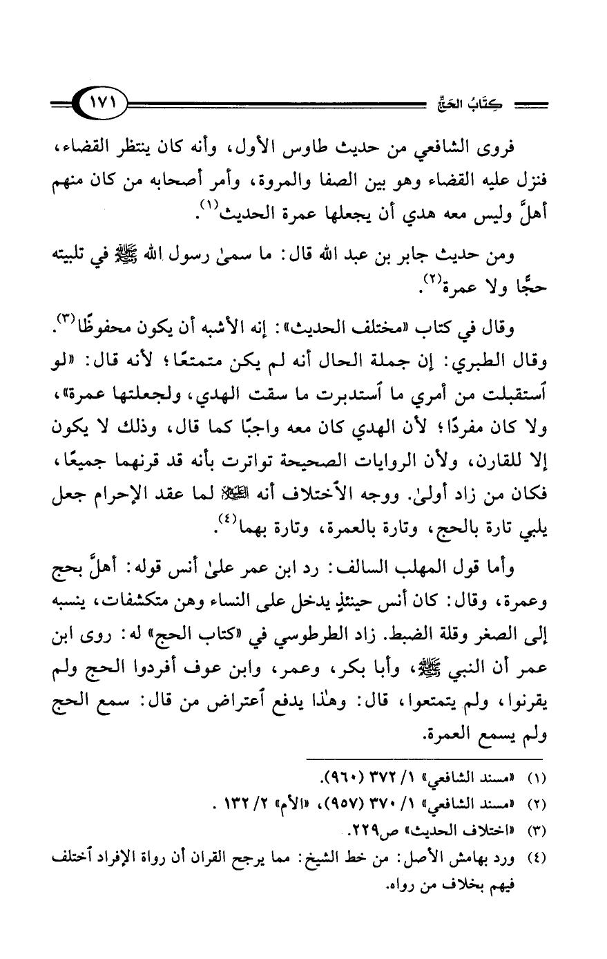 (¬1) "مسند الشافعي" 1/ 372 (960).