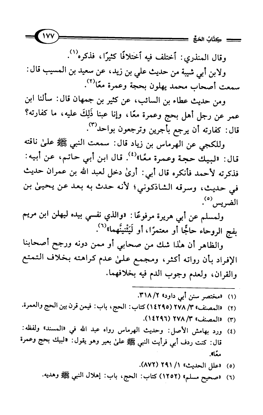 (¬2) "المصنف" 3/ 278 (14295) كتاب: الحج، باب: فيمن قرن بين الحج والعمرة.