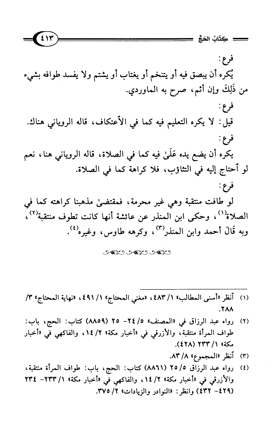 (¬4) رواه عبد الرزاق 5/ 25 (8861) كتاب: الحج، باب: طواف المرأة منتقبة، والأزرقي في "أخبار مكة" 2/ 14، والفاكهي في "أخبار مكة" 1/ 233 - 234 (429 - 432) وانظر: "النوادر والزيادات" 2/ 375.