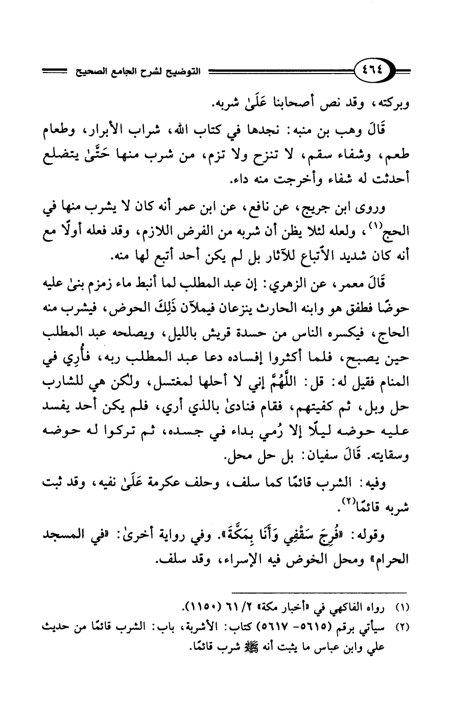 (¬2) سيأتي برقم (5615 - 5617) كتاب: الأشربة، باب: الشرب قائمًا من حديث علي وابن عباس ما يثبت أنه - صلى الله عليه وسلم - شرب قائمًا.