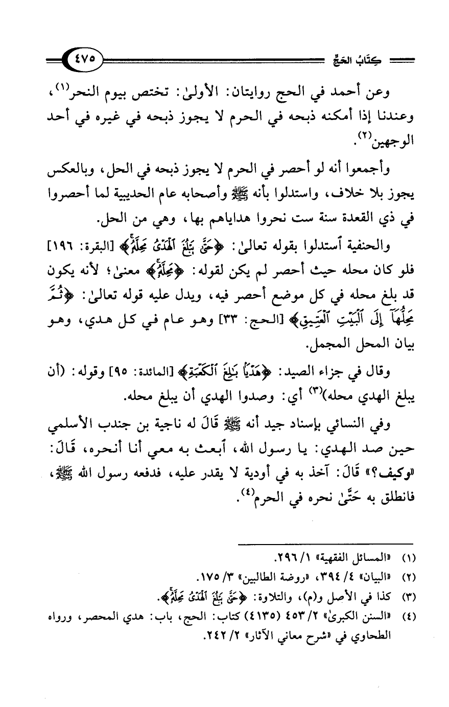 (¬3) كذا في الأصل و (م)، والتلاوة: {حَتَّى يَبْلُغَ الهَدْيُ مَحِلَّهُ}.