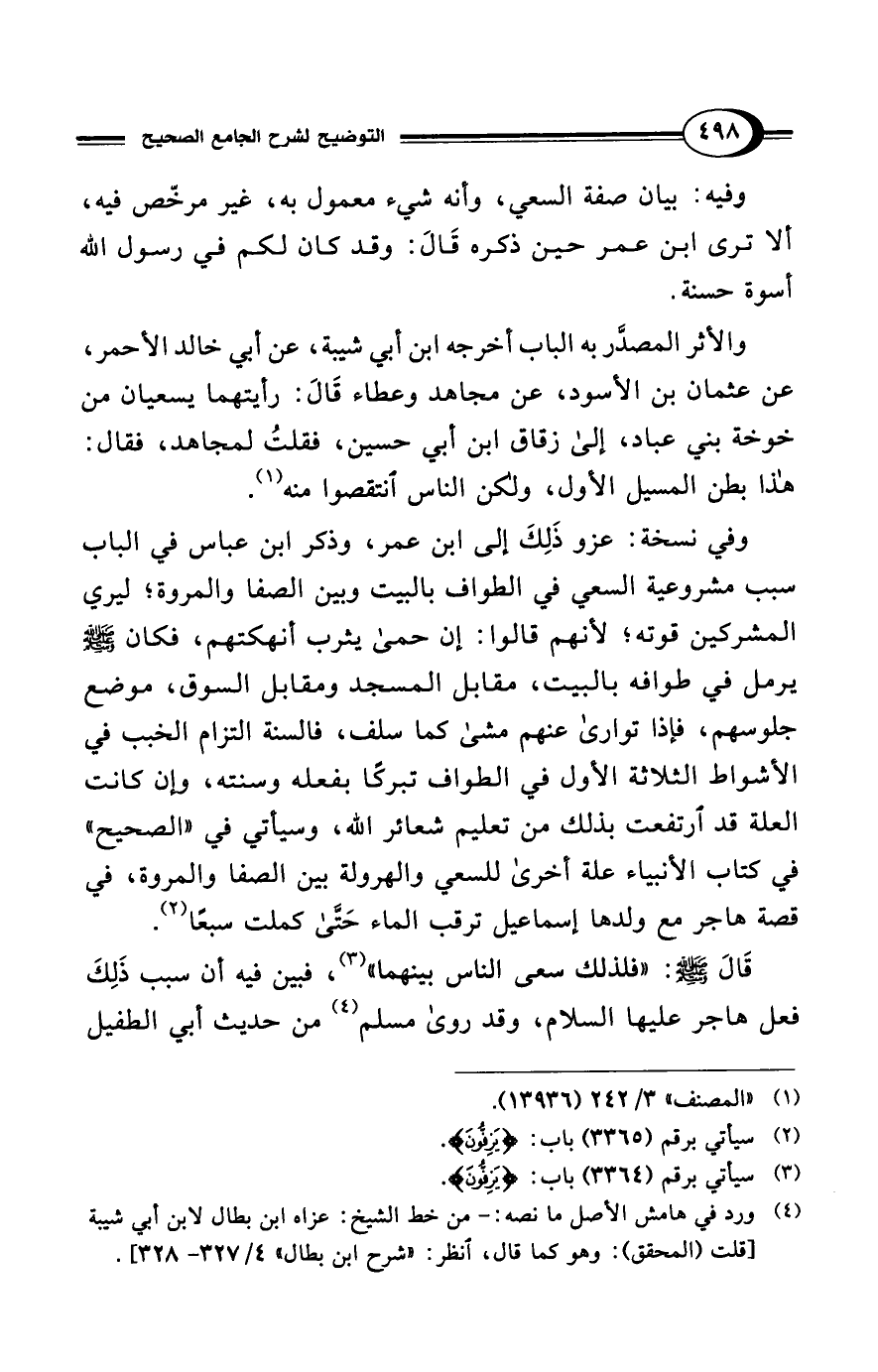 قَالَ - صلى الله عليه وسلم -: "فلذلك سعى الناس بينهما" (¬3)، فبين فيه أن سبب ذَلِكَ فعل هاجر عليها السلام، وقد روى مسلم (¬4) من حديث أبي الطفيل
