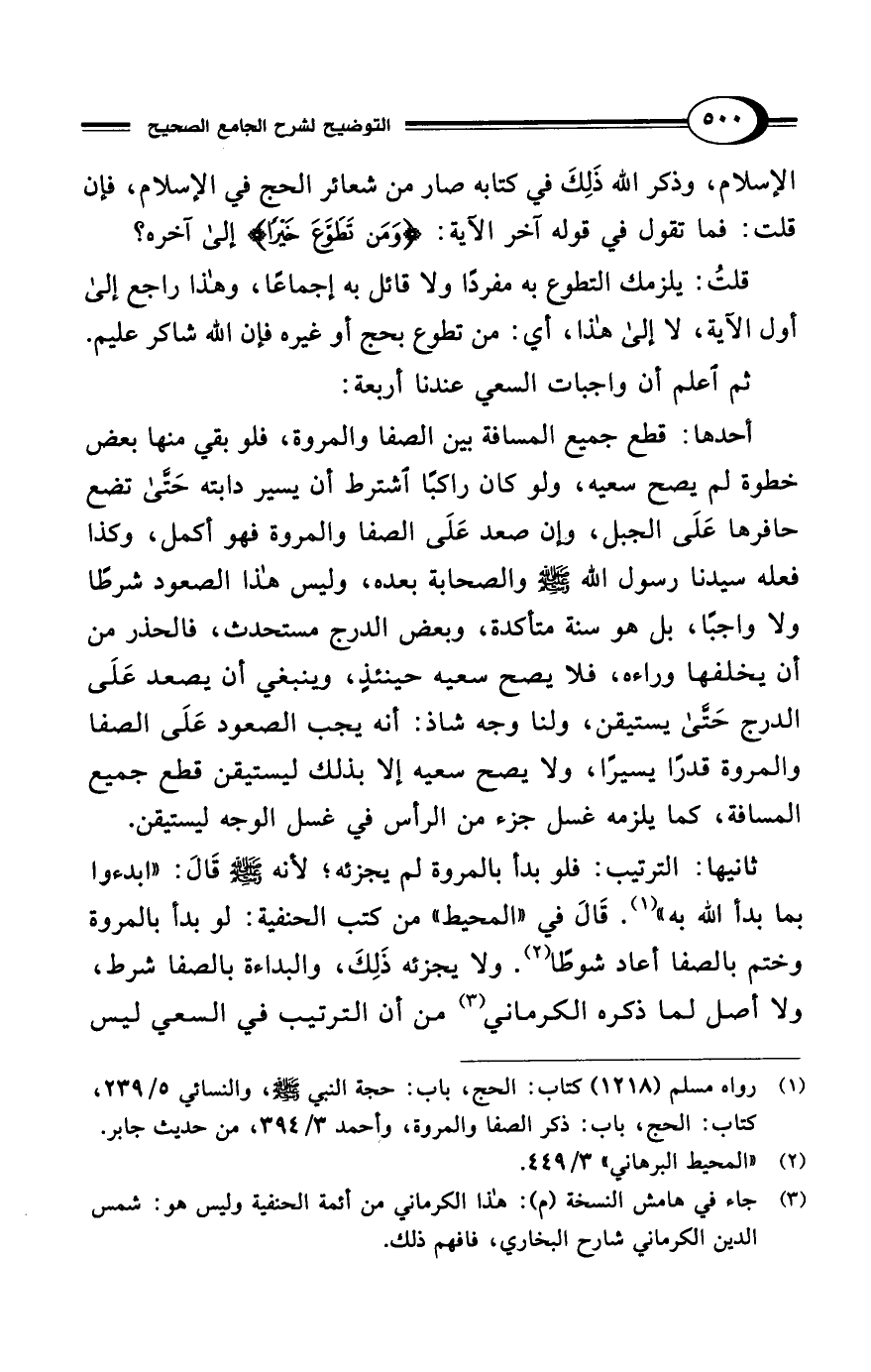 (¬1) رواه مسلم (1218) كتاب: الحج، باب: حجة النبي - صلى الله عليه وسلم -، والنسائي 5/ 239، كتاب: الحج، باب: ذكر الصفا والمروة، وأحمد 3/ 394، من حديث جابر.