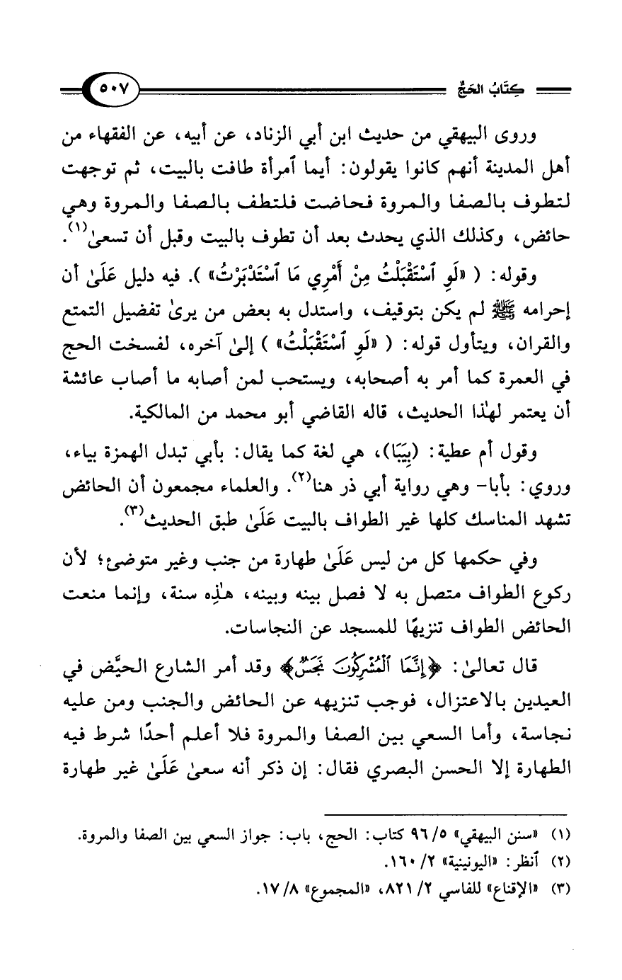 (¬1) "سنن البيهقي" 5/ 96 كتاب: الحج، باب: جواز السعي بين الصفا والمروة.