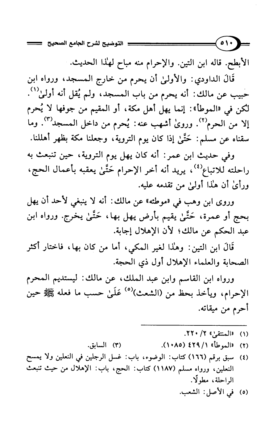 (¬2) "الموطأ" 1/ 429 (1085).