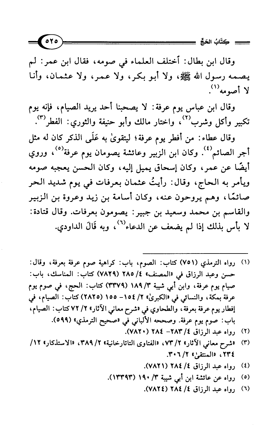 (¬1) رواه الترمذي (751) كتاب: الصوم، باب: كراهية صوم عرفة بعرفة، وقال: حسن وعبد الرزاق في "المصنف" 4/ 285 (7829) كتاب: المناسك، باب: صيام يوم عرفة، وابن أبي شيبة 3/ 189 (3379) كتاب: الحج، في صوم يوم عرفة بمكة، والنسائي في "الكبرى" 2/ 154 - 155 (2825) كتاب: الصيام، في إفطار يوم عرفة بعرفة، والطحاوي في "شرح معاني الآثار" 2/ 72 كتاب: الصيام، باب: صوم يوم عرفة. وصححه الألباني في "صحيح الترمذي" (599).
