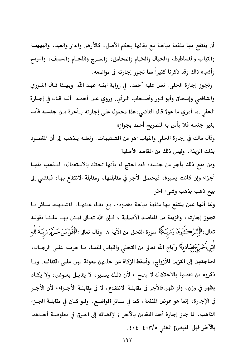 وتجوز إجارة الحلي. نص عليه أحمد، في رواية ابنه عبد الله. وبهذا قال الثوري والشافعي وإسحاق وأبو ثور وأصحاب الرأي. وروي عن أحمد أنه قال في إجارة الحلي: ما أدري ما هو؟ قال القاضي: هذا محمول على إجارته بأجرة من جنسه فأما بغير جنسه فلا بأس به لتصريح أحمد بجوازه.