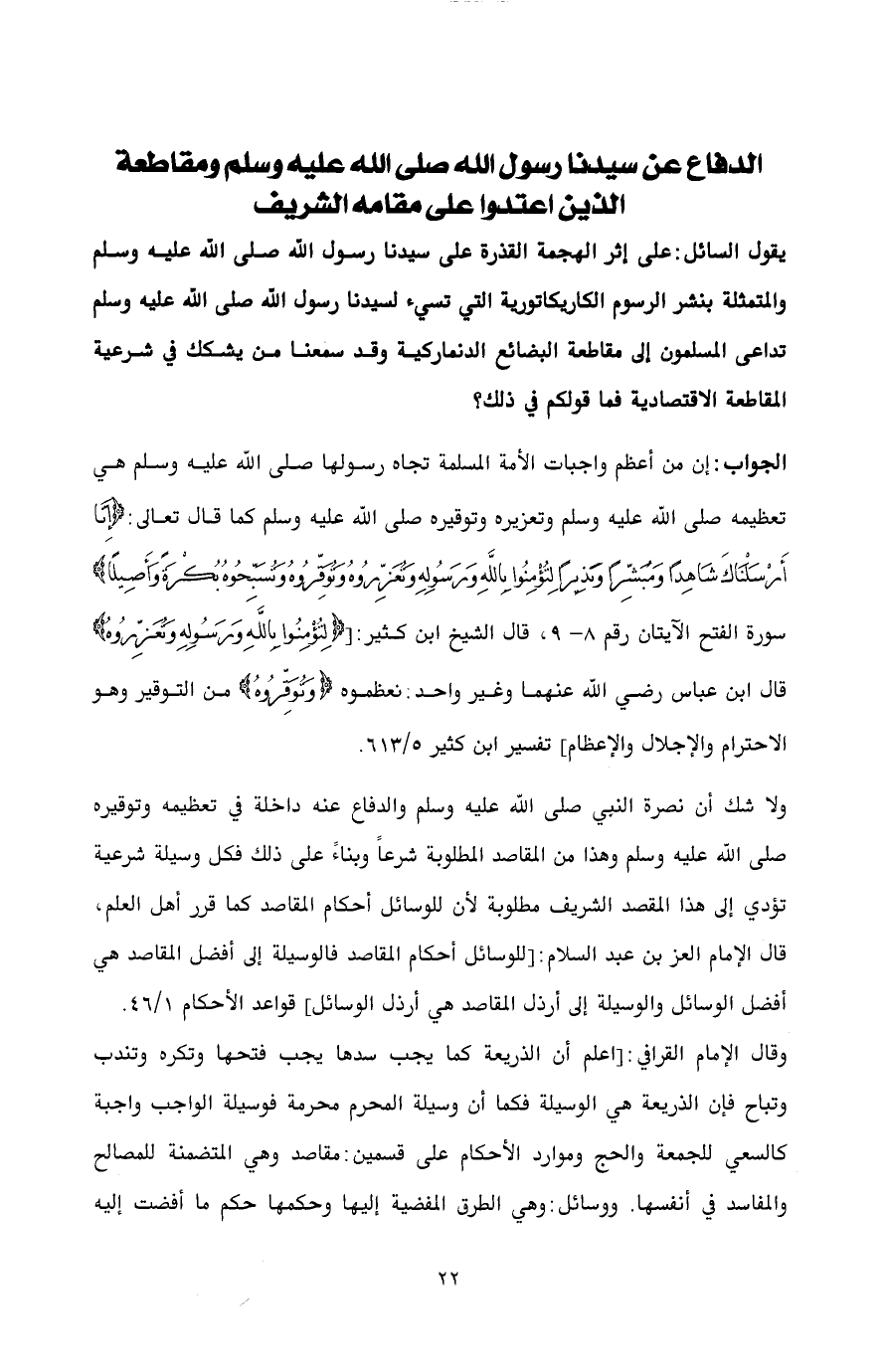 الدفاع عن سيدنا رسول الله صلى الله عليه وسلم ومقاطعة الذين اعتدوا على مقامه الشريف