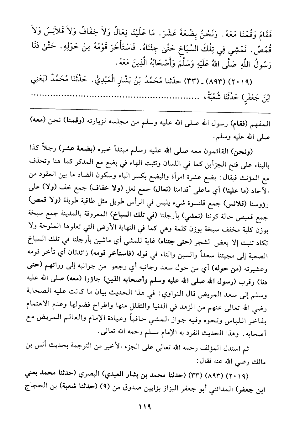 (٢٠١٩) (٨٩٣) (٣٣) (حدثنا محمد بن بشار العبدي) البصري (حدثنا محمد يعني ابن جعفر) المدائني أبو جعفر البزاز بزايين صدوق من (٩) (حدثنا شعبة) بن الحجاج