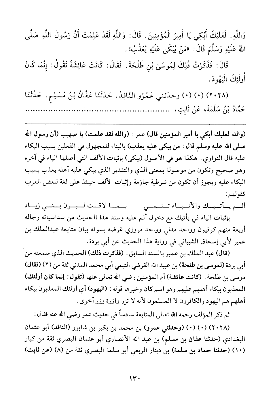 وَاللهِ. لَعَلَيكَ أَبْكِي يَا أَمِيرَ الْمُؤْمِنِينَ. قَال: وَاللهِ لَقَدْ عَلِمْتَ أَنَّ رَسُولَ الله صَلَّى اللهُ عَلَيهِ وَسَلَّمَ قَال: "مَنْ يُبْكَى عَلَيهِ يُعَذَّبُ".