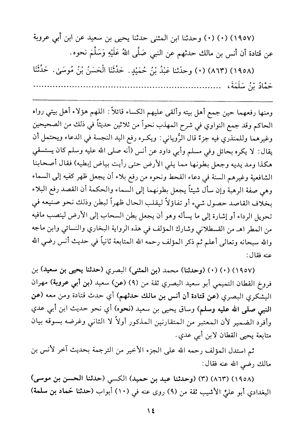 (١٩٥٧) (٠) (٠) (وحدثنا) محمد (بن المثنى) البصري (حدثنا يحيى بن سعيد) بن فروخ القطان التميمي أبو سعيد البصري ثقة من (٩) (عن) سعيد (بن أبي عروبة) مهران اليشكري البصري (عن قتادة أن أنس بن مالك حدثهم) أي حدث قتادة ومن معه (عن النبي صلى الله عليه وسلم) وساق يحيى بن سعيد (نحوه) أي نحو حديث ابن أبي عدي وأفرد الضمير لأن المعتبر من المتقارنين المذكور أولًا لا الثاني وغرضه بسوقه بيان متابعة يحيى القطان لابن أبي عدي.