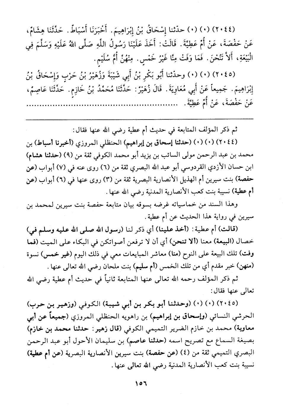 (٢٠٤٤) (٠) (٠) (حدثنا إسحاق بن إبراهيم) الحنظلي المروزي (أخبرنا أسباط) بن محمد بن عبد الرحمن مولى السائب بن يزيد أبو محمد الكوفي ثقة من (٩) (حدثنا هشام) ابن حسان الأزدي القردوسي أبو عبد الله البصري ثقة من (٦) روى عنه في (٧) أبواب (عن حفصة) بنت سيرين أم الهذيل الأنصارية البصرية ثقة من (٣) روى عنها في (٦) أبواب (عن أم عطية) نسيبة بنت كعب الأنصارية المدنية رضي الله عنها.
