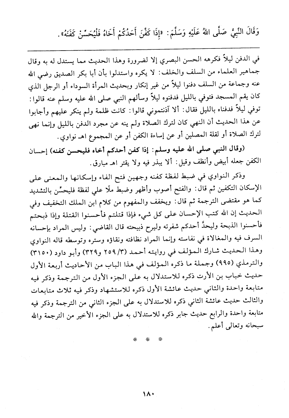 وَقَال النَّبِيُّ صَلَّى اللهُ عَلَيهِ وَسَلَّمَ: "إِذَا كَفَّنَ أَحَدُكُمْ أَخَاهُ فَلْيُحَسِّنْ كَفَنَهُ"