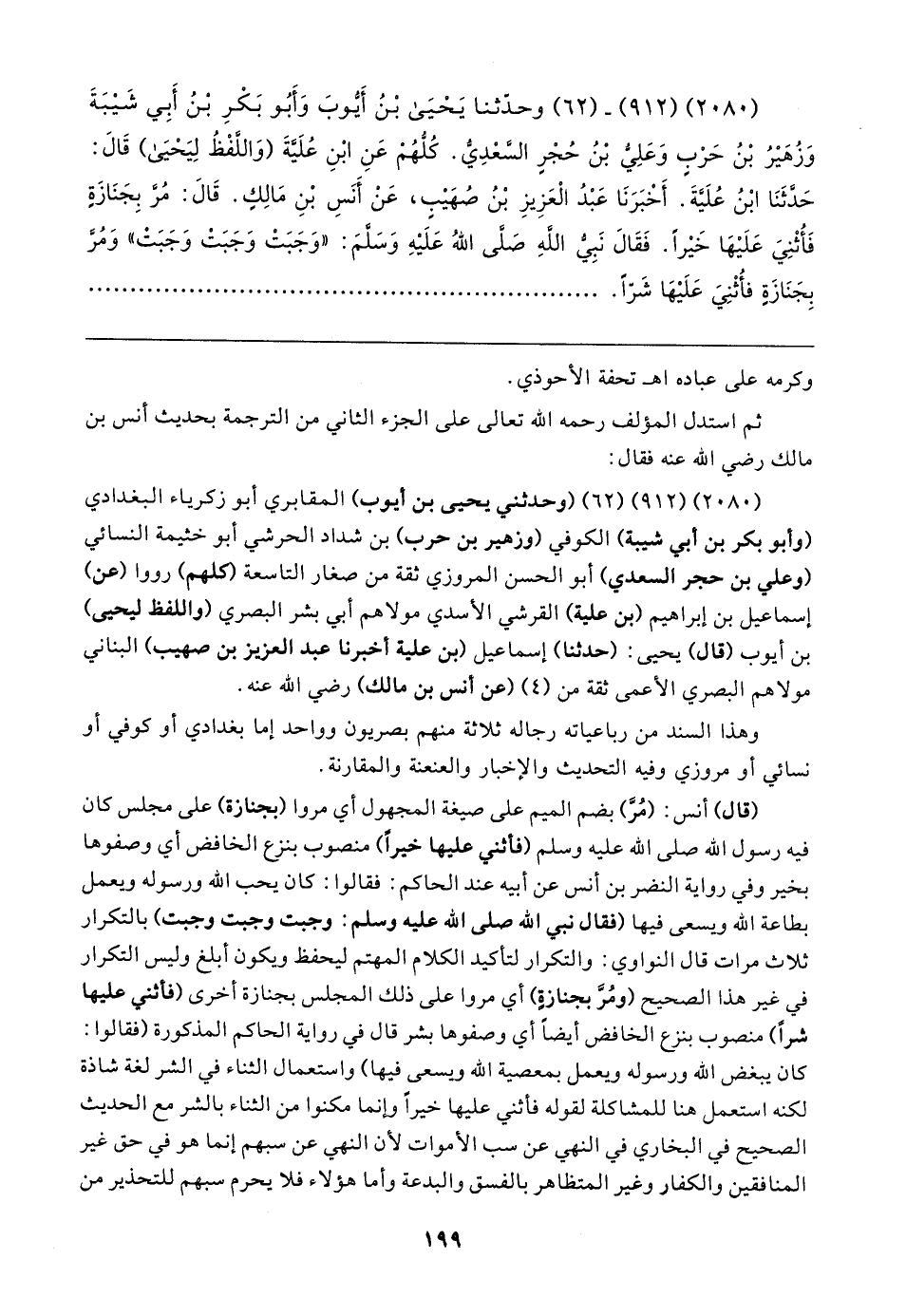 (٢٠٨٠) (٩١٢) - (٦٢) وحدّثنا يَحْيَى بْنُ أَيُّوبَ وَأَبُو بَكْرِ بْنُ أَبِي شَيبَةَ وَزُهَيرُ بْنُ حَرْبِ وَعَلِيُّ بْنُ حُجْرٍ السَّعْدِيُّ. كُلُّهُمْ عَنِ ابْنِ عُلَيَّةَ (وَاللَّفْظُ لِيَحْيَى) قَال: حَدَّثَنَا ابْنُ عُلَيَّةَ. أَخْبَرَنَا عَبْدُ الْعَزِيزِ بْنُ صُهَيبٍ، عَنْ أَنَسِ بْنِ مَالِكٍ. قَال: مُرَّ بِجَنَازَةٍ فَأُثْنِيَ عَلَيهَا خَيرًا. فَقَال نَبِيُّ اللهِ صَلَّى اللهُ عَلَيهِ وَسَلَّمَ: "وَجَبَتْ وَجَبَتْ وَجَبَتْ" وَمُرَّ بِجَنَازَةٍ فأُثْنِيَ عَلَيهَا شَرًّا