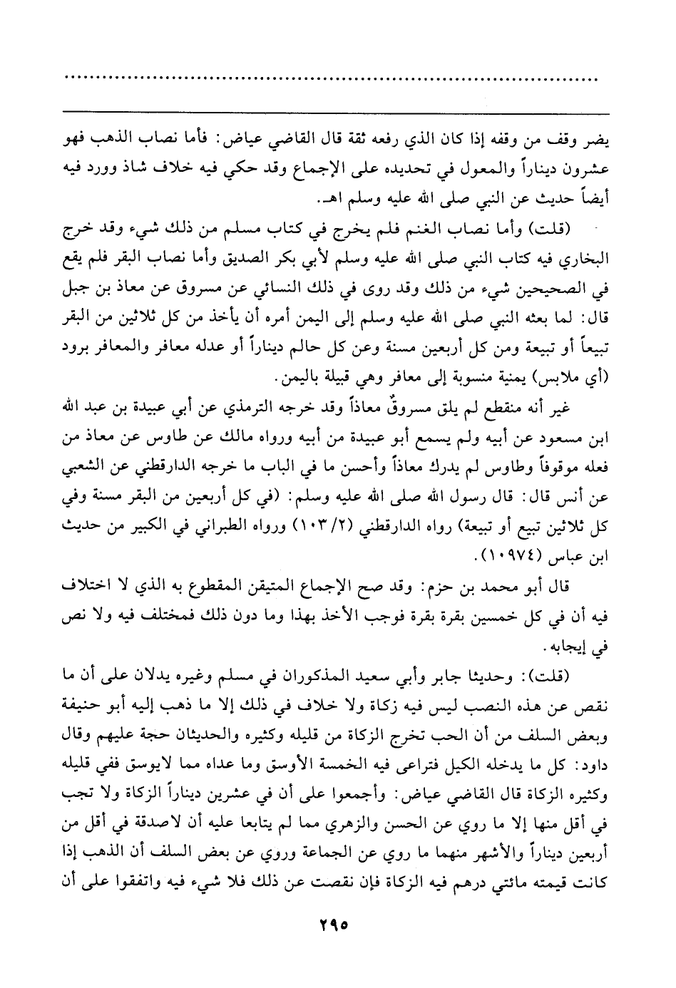 يضر وقف من وقفه إذا كان الَّذي رفعه ثقة قال القاضي عياض: فأما نصاب الذهب فهو عشرون دينارًا والمعول في تحديده على الإجماع وقد حكي فيه خلاف شاذ وورد فيه أيضًا حديث عن النبي صلى الله عليه وسلم اهـ.