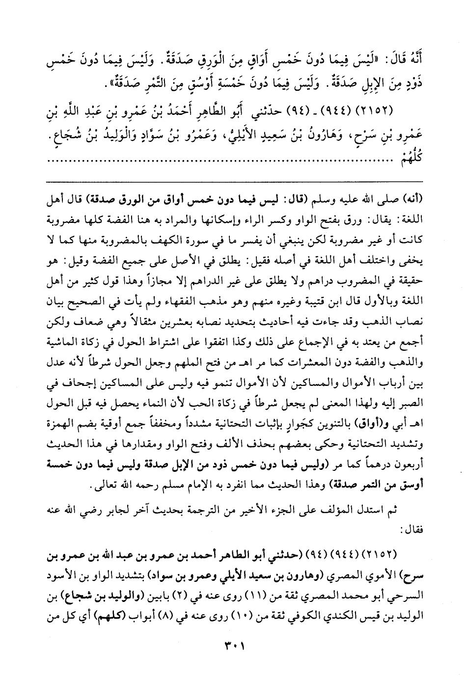 (٢١٥٢) (٩٤٤) (٩٤) (حدثني أبو الطاهر أحمد بن عمرو بن عبد الله بن عمرو بن سرح) الأموي المصري (وهارون بن سعيد الأيلي وعمرو بن سواد) بتشديد الواو بن الأسود السرحي أبو محمد المصري ثقة من (١١) روى عنه في (٢) بابين (والوليد بن شجاع) بن الوليد بن قيس الكندي الكوفي ثقة من (١٠) روى عنه في (٨) أبواب (كلهم) أي كل من
