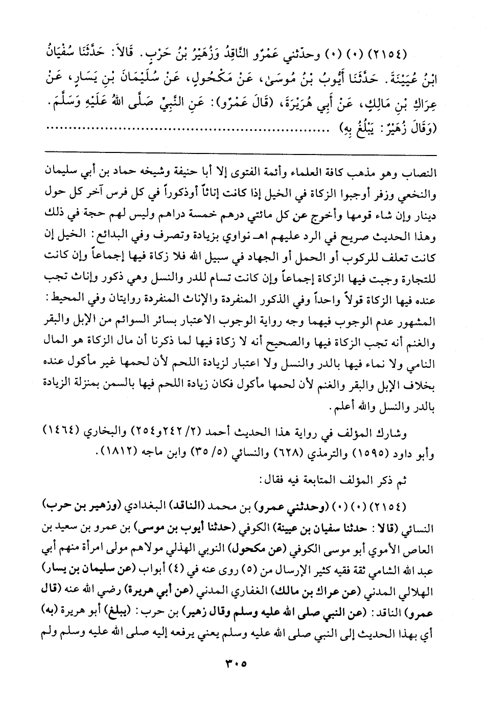 (٢١٥٤) (٠) (٠) وحدَّثني عَمْرو النَّاقِدُ وَزُهَيرُ بْنُ حَرْبٍ. قَالا: حَدَّثَنَا سُفْيَانُ بْنُ عُيَينَةَ. حَدَّثَنَا أَيُّوبُ بْنُ مُوسَى، عَنْ مَكْحُولٍ، عَنْ سُلَيمَانَ بْنِ يَسَارٍ، عَنْ عِرَاكِ بْنِ مَالِكٍ، عَنْ أَبِي هُرَيرَةَ، (قَال عَمْرٌو): عَنِ النَّبِيِّ صَلَّى اللهُ عَلَيهِ وَسَلَّمَ. (وَقَال زُهَيرٌ: يَبْلُغُ بِهِ)