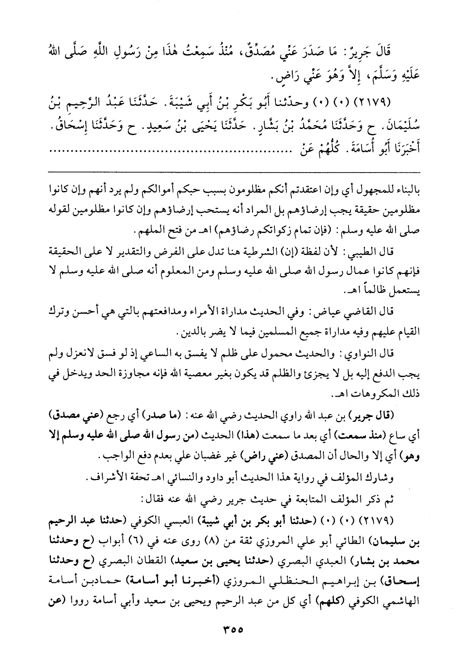 قَال جَرِيرٌ: مَا صَدَرَ عَني مُصَدِّقٌ، مُنْذُ سَمِعْتُ هذَا مِنْ رَسُولِ اللهِ صَلَّى اللهُ عَلَيهِ وَسَلَّمَ، إلا وَهُوَ عَنِّي رَاضٍ.