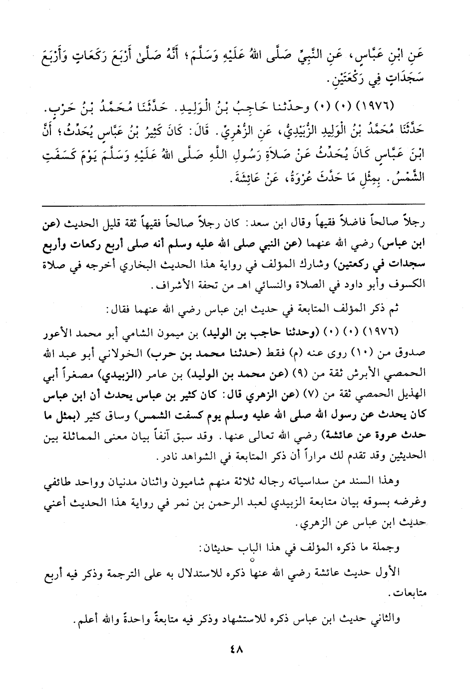 (١٩٧٦) (٠) (٠) وَحَدَّثَنَا حَاجِبُ بْنُ الْوَلِيدِ. حَدَّثَنَا مُحَمَّدُ بْنُ حَرْبٍ. حَدَّثَنَا مُحَمَّدُ بْنُ الْوَلِيدِ الزُّبَيدِيُّ، عَنِ الزُّهْرِيِّ. قَال: كَانَ كَثِيرُ بْنُ عَبَّاسٍ يُحَدِّثُ؛ أَنَّ ابْنَ عَبَّاسٍ كَانَ يُحَدِّثُ عَنْ صَلاةِ رَسُولِ اللَّهِ صلى الله عليه وسلم يَوْمَ كَسَفَتِ الشَّمْسُ. بِمِثْلِ مَا حَدَّثَ عُرْوَةُ, عَنْ عَائِشَةَ