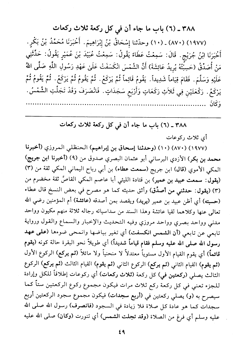 ٣٨٨ - (٦) باب ما جاء أن في كل ركعة ثلاث ركعات