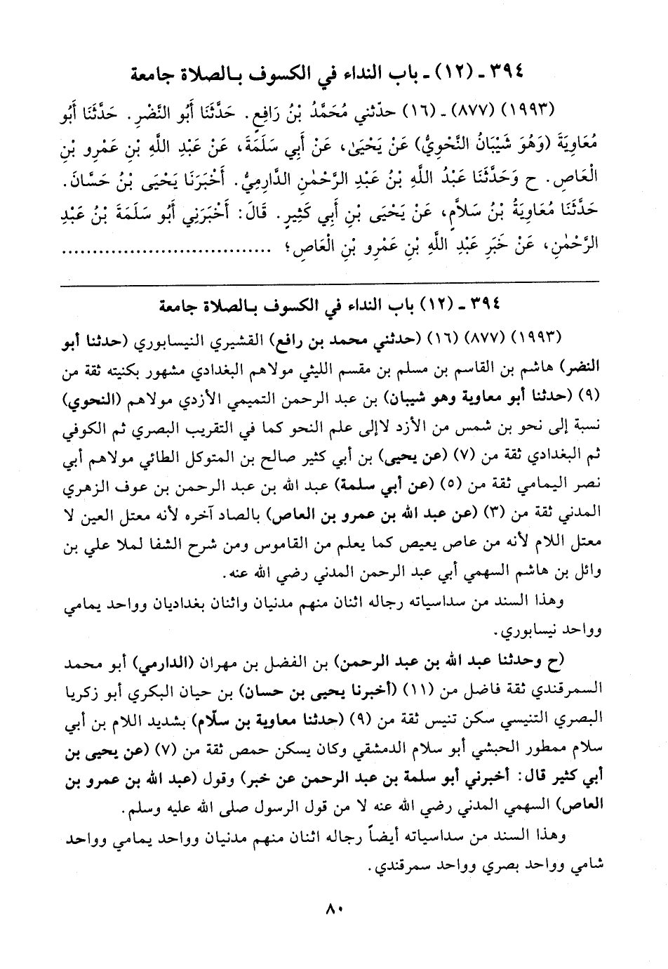 ٣٩٤ - (١٢) باب النداء في الكسوف بالصلاة جامعة
