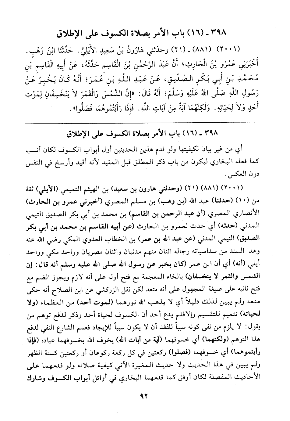 ٣٩٨ - (١٦) باب الأمر بصلاة الكسوف على الإطلاق