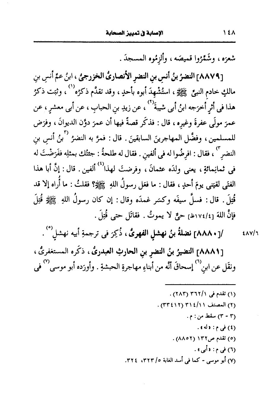 8879- النضر بن أنس بن النضر، الأَنصارِيّ الخزرجي.