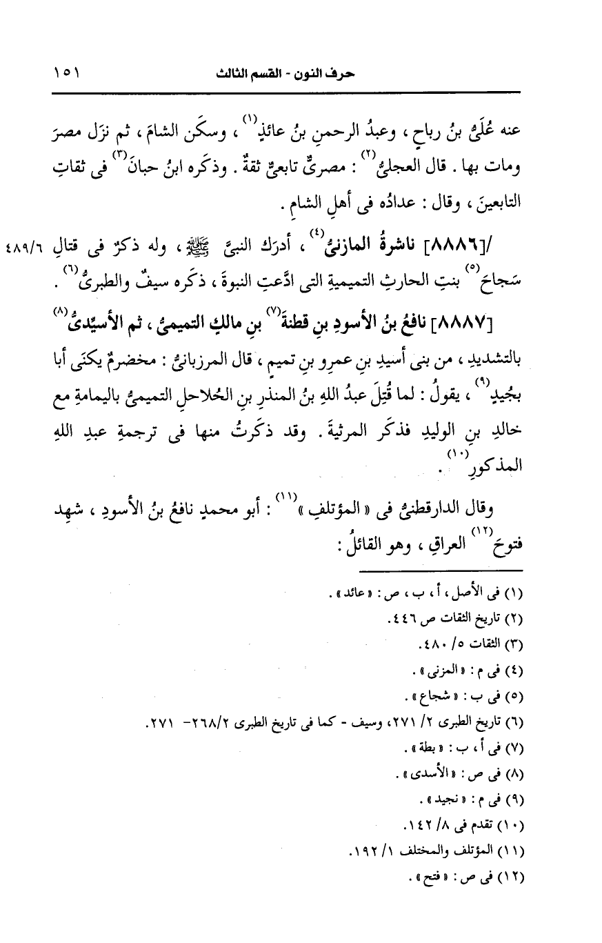 8887- نافع بن الأَسود بن قطنة بن مالك التميمي ثم الأسيدي بالتشديد.